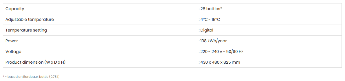 Part of Mayer’s elemental series, MMWC28MAG, Free Standing Wine Chiller allows you to store up to 28 bottles of your favourite wine in ideal conditions. The removable wooden shelves give you the flexibility to remove extra shelf level. Equipped with an automatic control panel lock function, you can now store your precious wine with ease without worrying about any unwanted changes to your temperature or power settings.